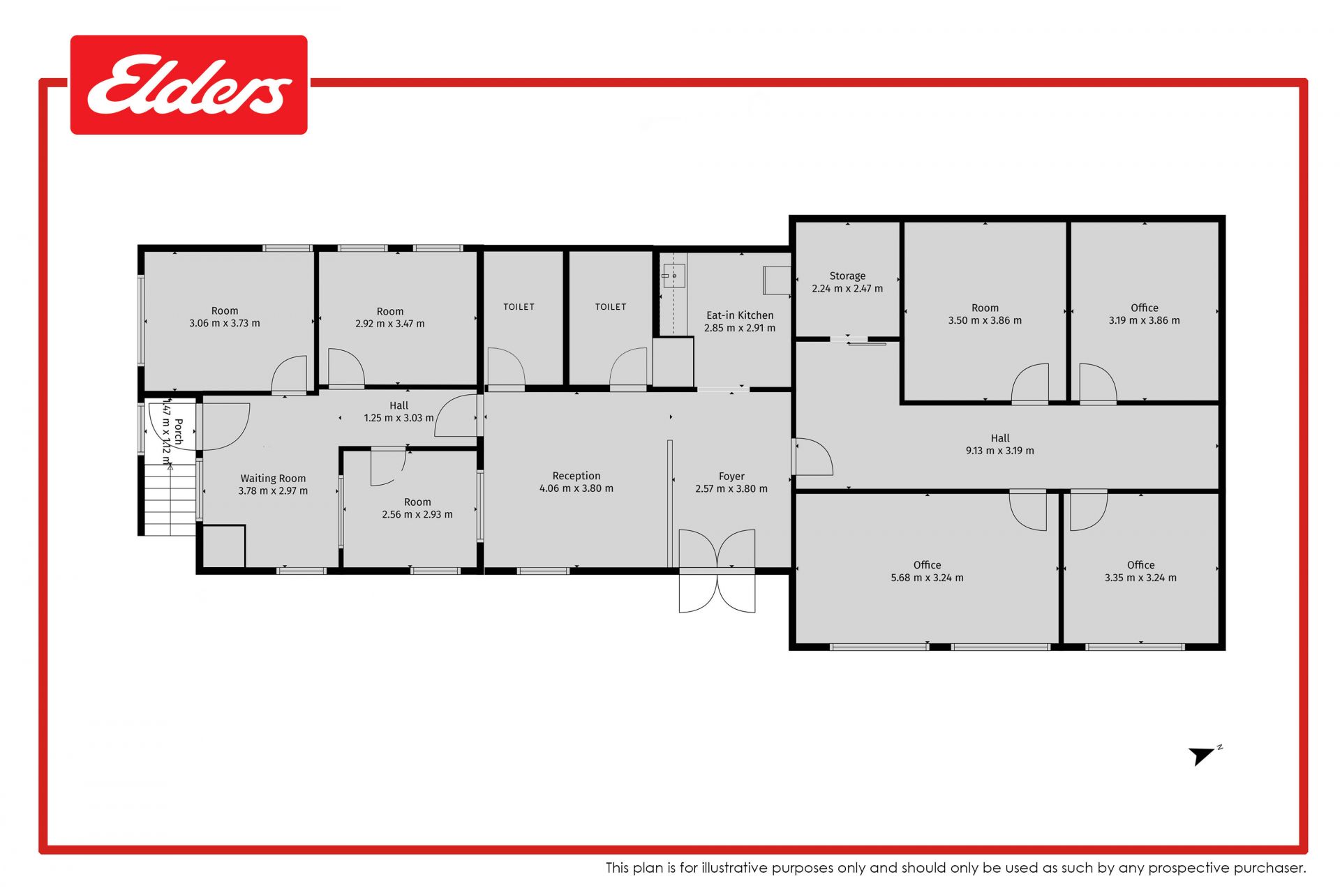 • Large central reception area or waiting room, with adjacent kitchen/staff room.