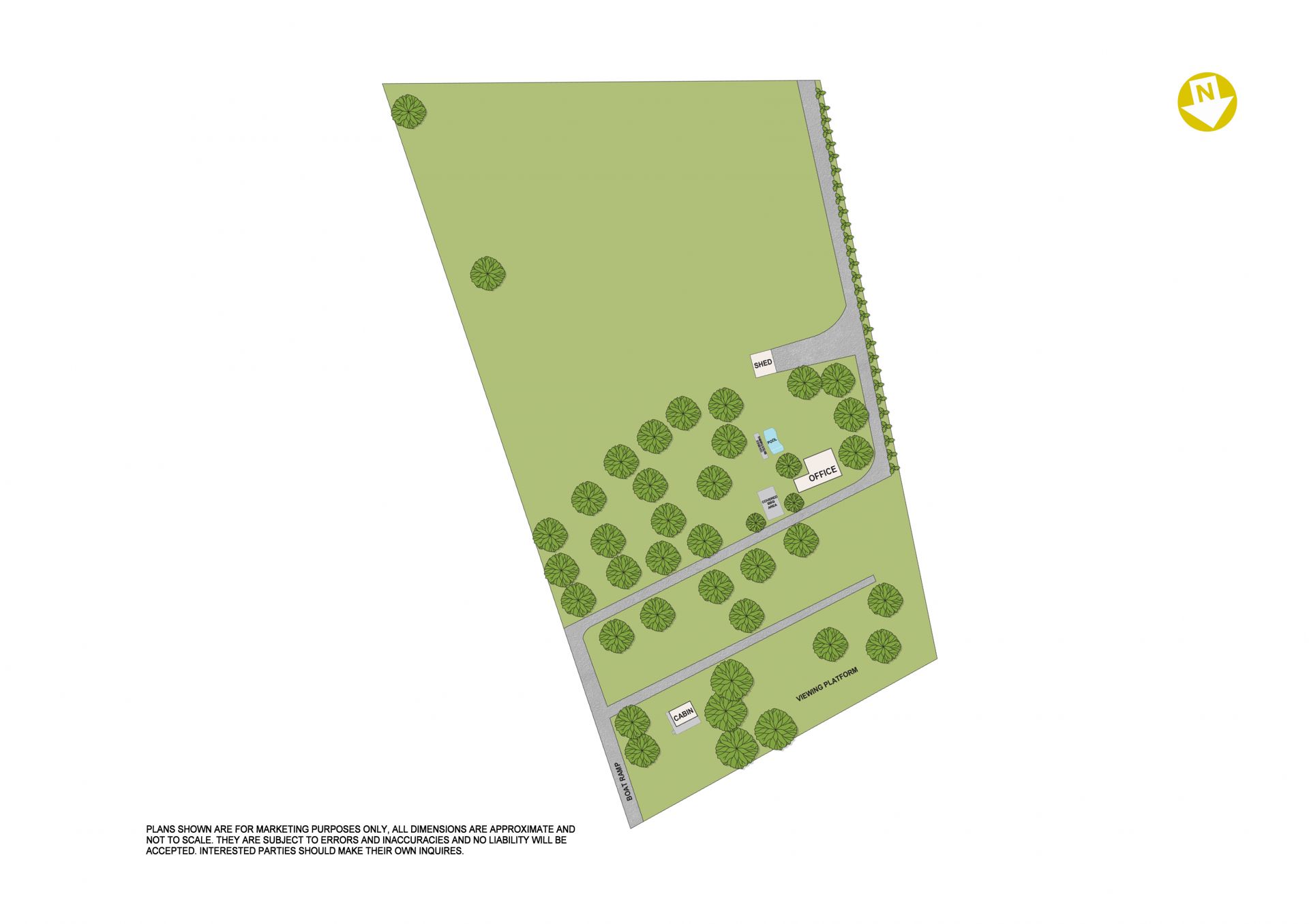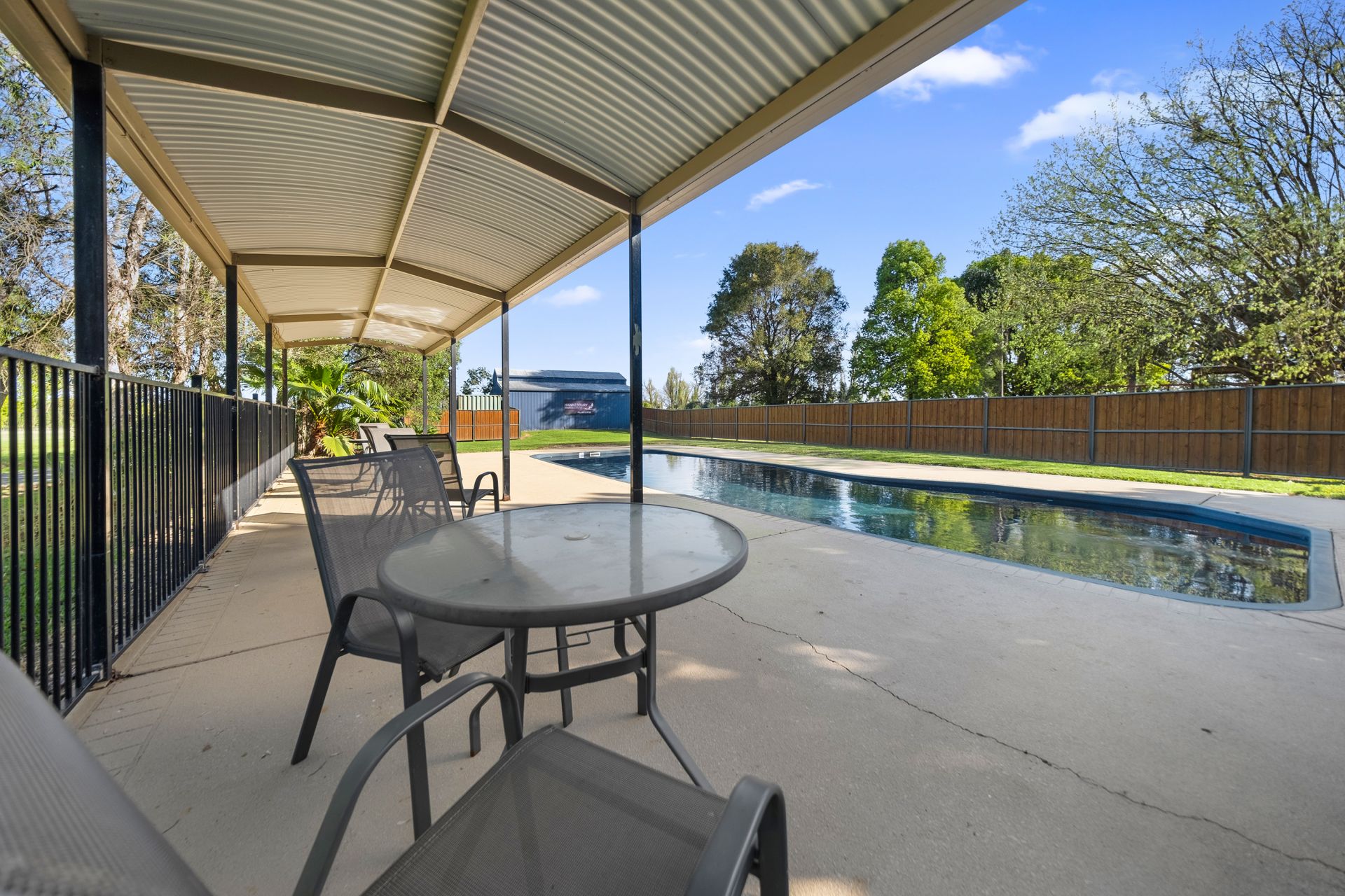 The property features 60 serviced caravan spots, a dedicated concrete boat ramp, and a host of family-friendly amenities, including a fenced child-safe swimming pool, landscaped picnic grounds, and play structures. With power, town water, tank water, and an Envirocycle septic system, the DA approved caravan park is fully equipped for comfortable, year-round use.