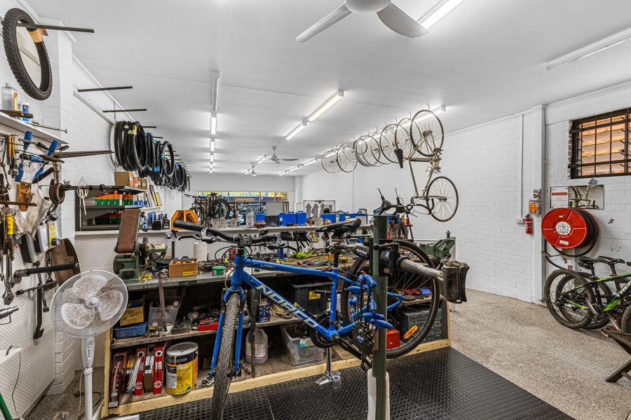 Two tiered within, the building is currently configured to offer a retail front of shop area separated from the cycle assembly and maintenance area at the rear.