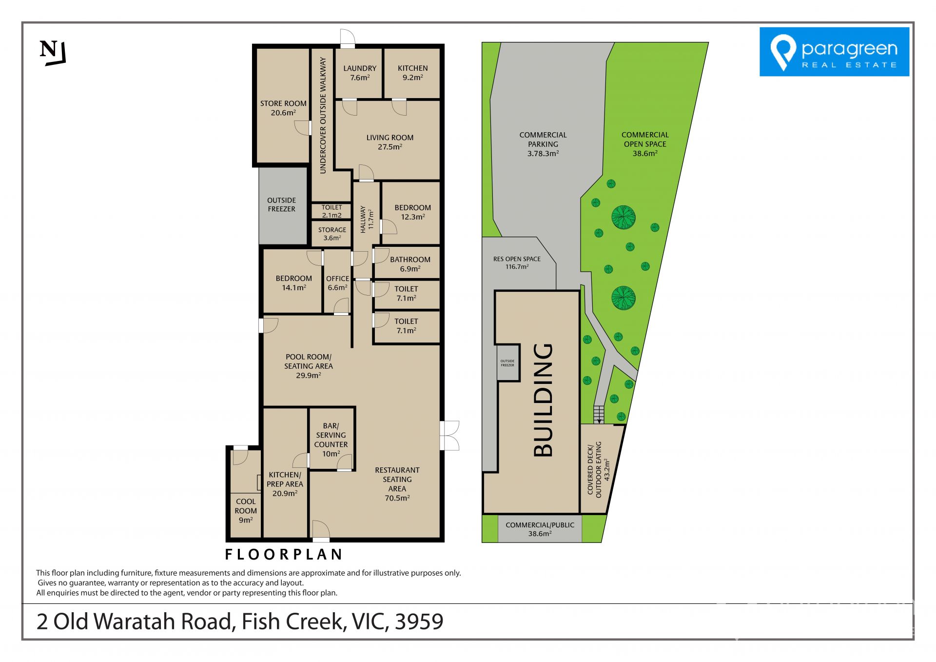 Attached to the restaurant area is a two bedroom residence, with office space with a full sized bathroom, kitchen / dining area and large open plan lounge area. A laundry / mud room space and a rear fully enclosed private yard.
