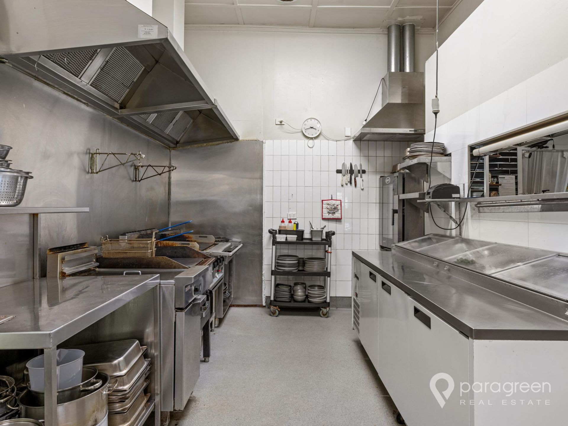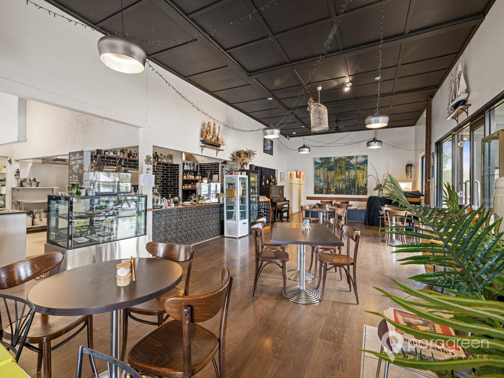 There is also an additional large dining space which is currently closed off but could easily be expanded into with minimal costs. A full sized commercial kitchen with cool room and dry store, display cabinets, fridges and a walk-in freezer.