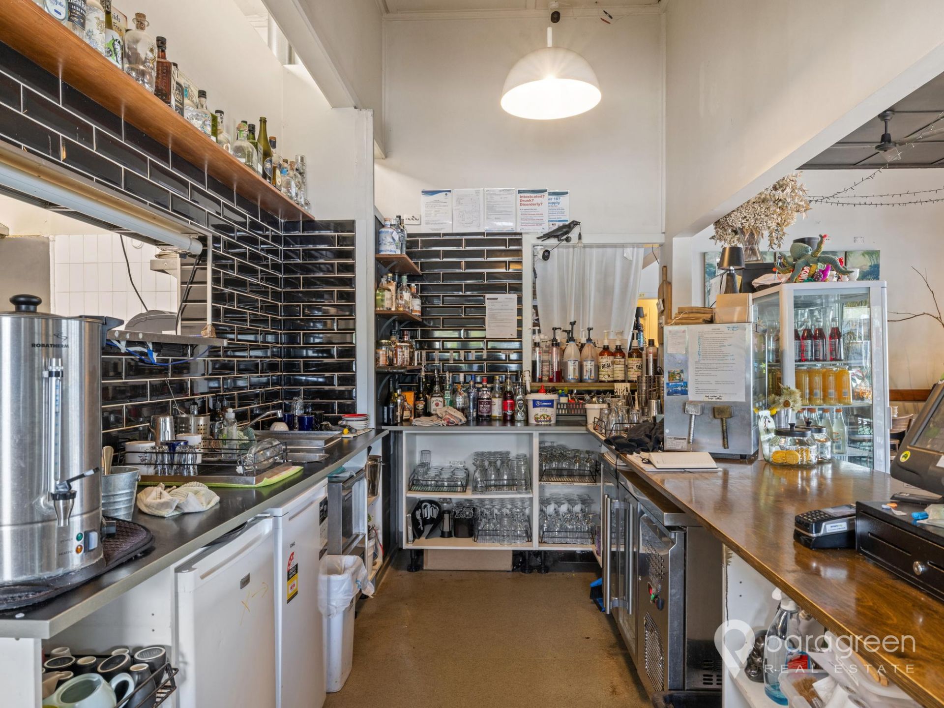 The premises is licensed for 80 patrons and has a large open plan internal dining area with plenty of room to sell products and a large external undercover deck with heaters and blinds for additional patronage.