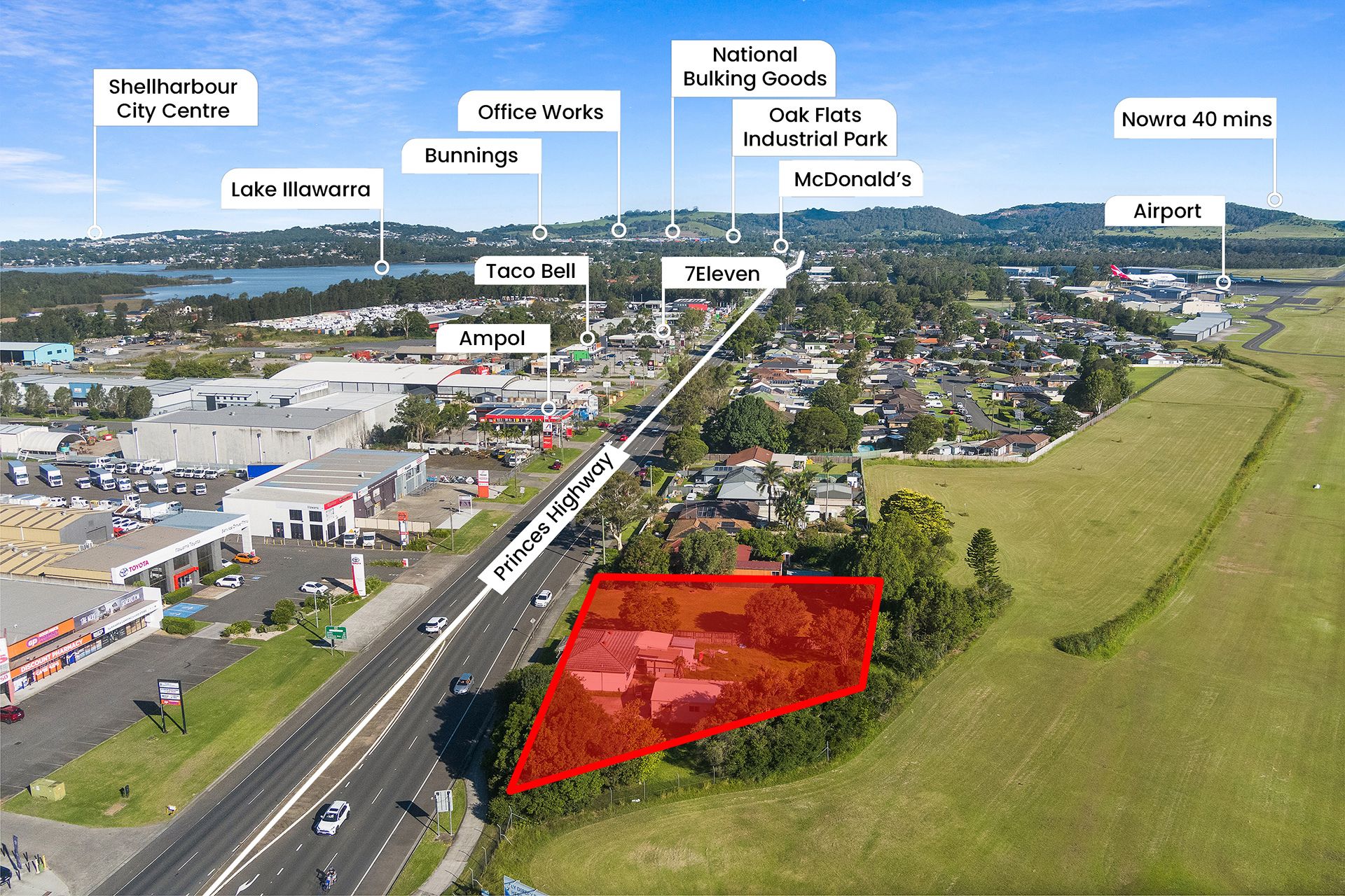 The expansive 2,916m² block is ideally positioned, backing directly onto the Albion Park Airport, with surrounding properties predominantly zoned for commercial use-making it a prime location for future growth and development.