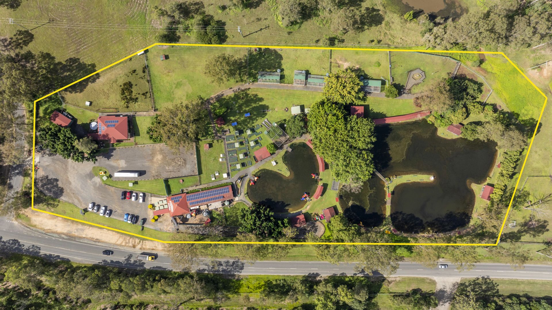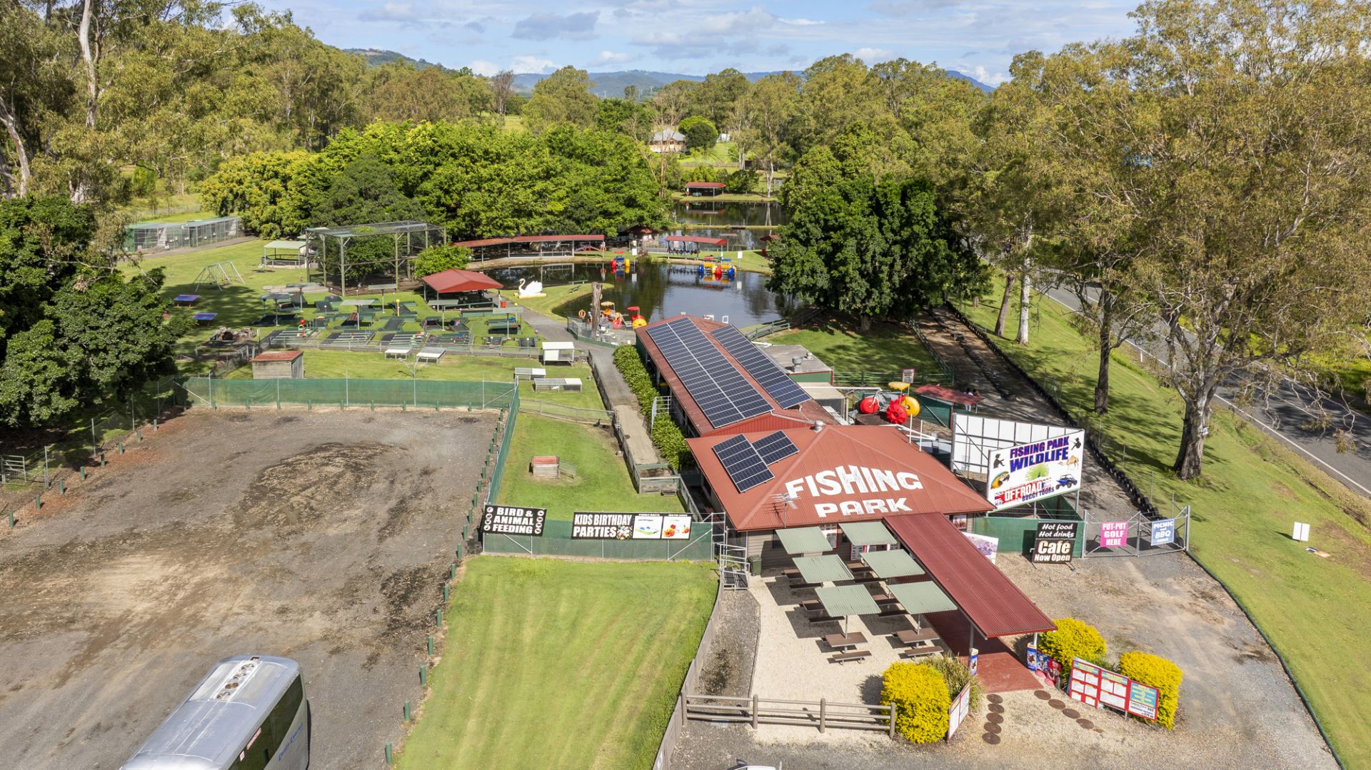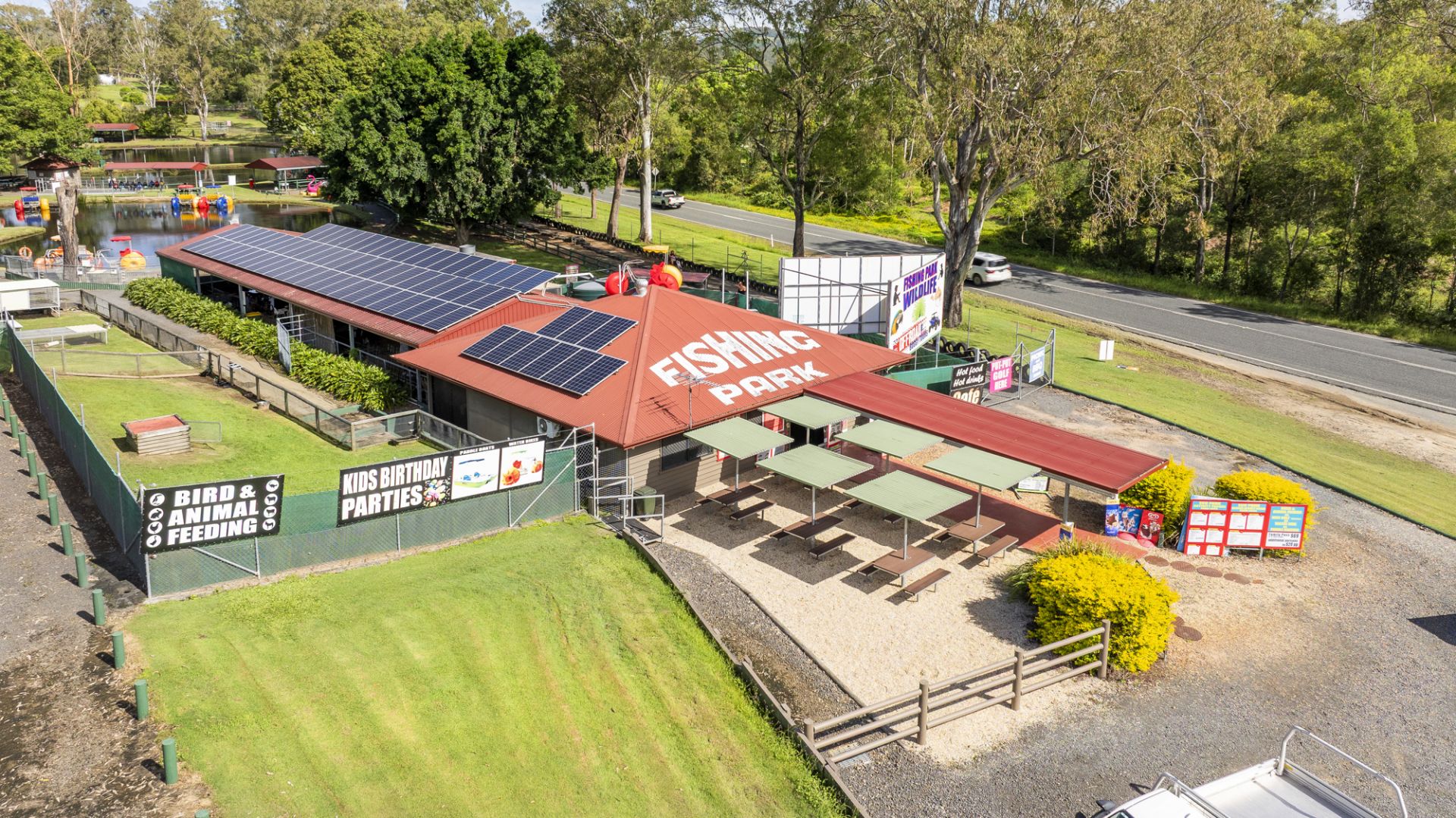 Currently operating as EcoPark Fishing Park & Farm Stay, the site is zoned Commercial and classified as a Special Tourist Attraction, with beautifully landscaped grounds featuring fishing ponds, open picnic areas, native wildlife, and engaging family-friendly activities. The property presents excellent exposure and accessibility, making it a regional destination with strong community and visitor appeal.