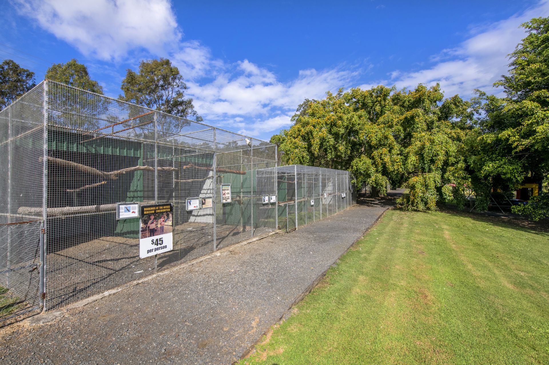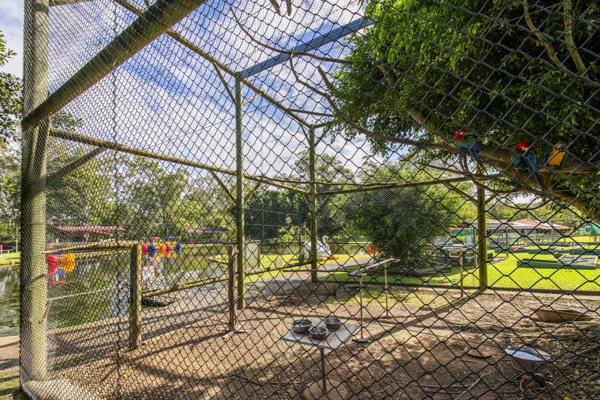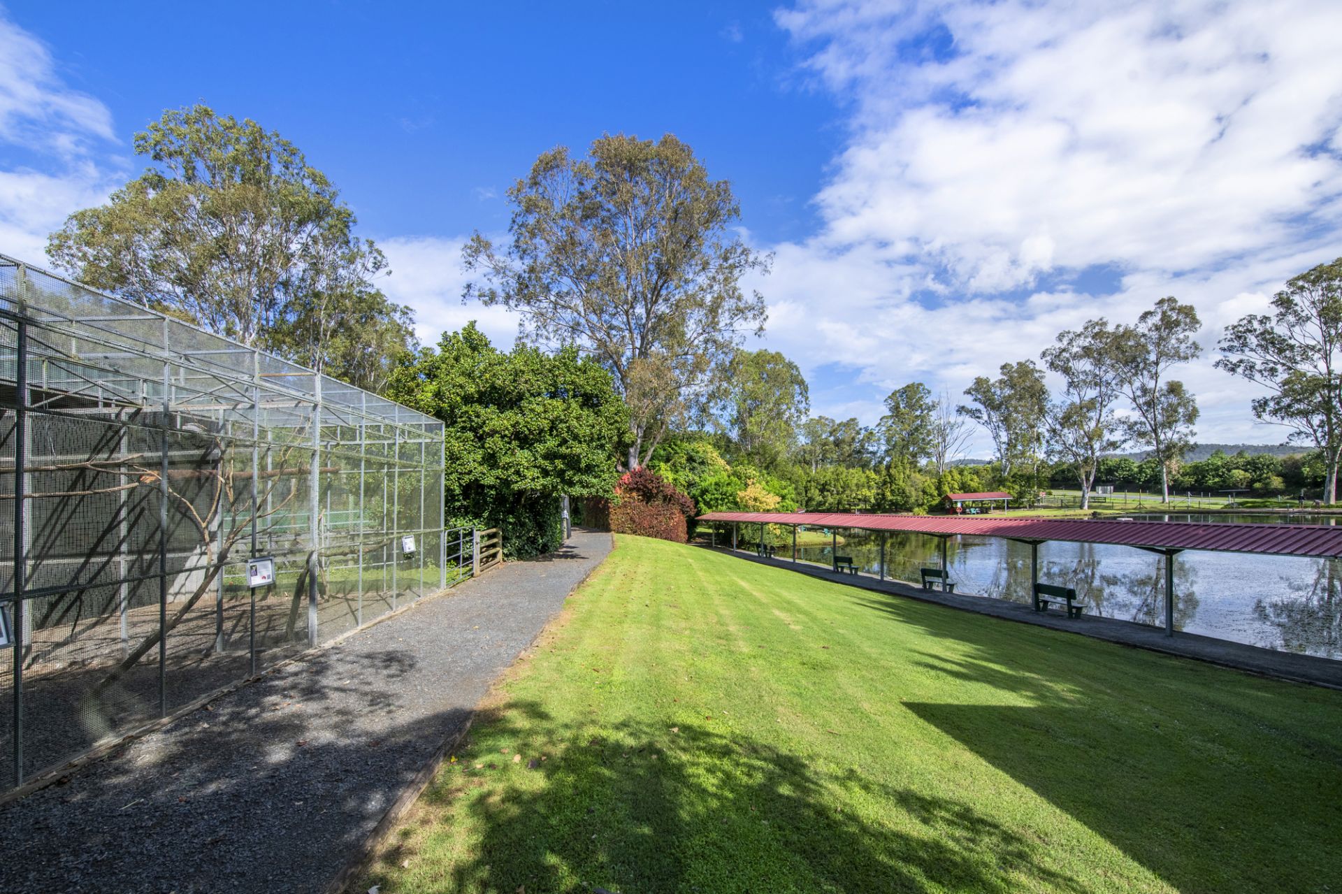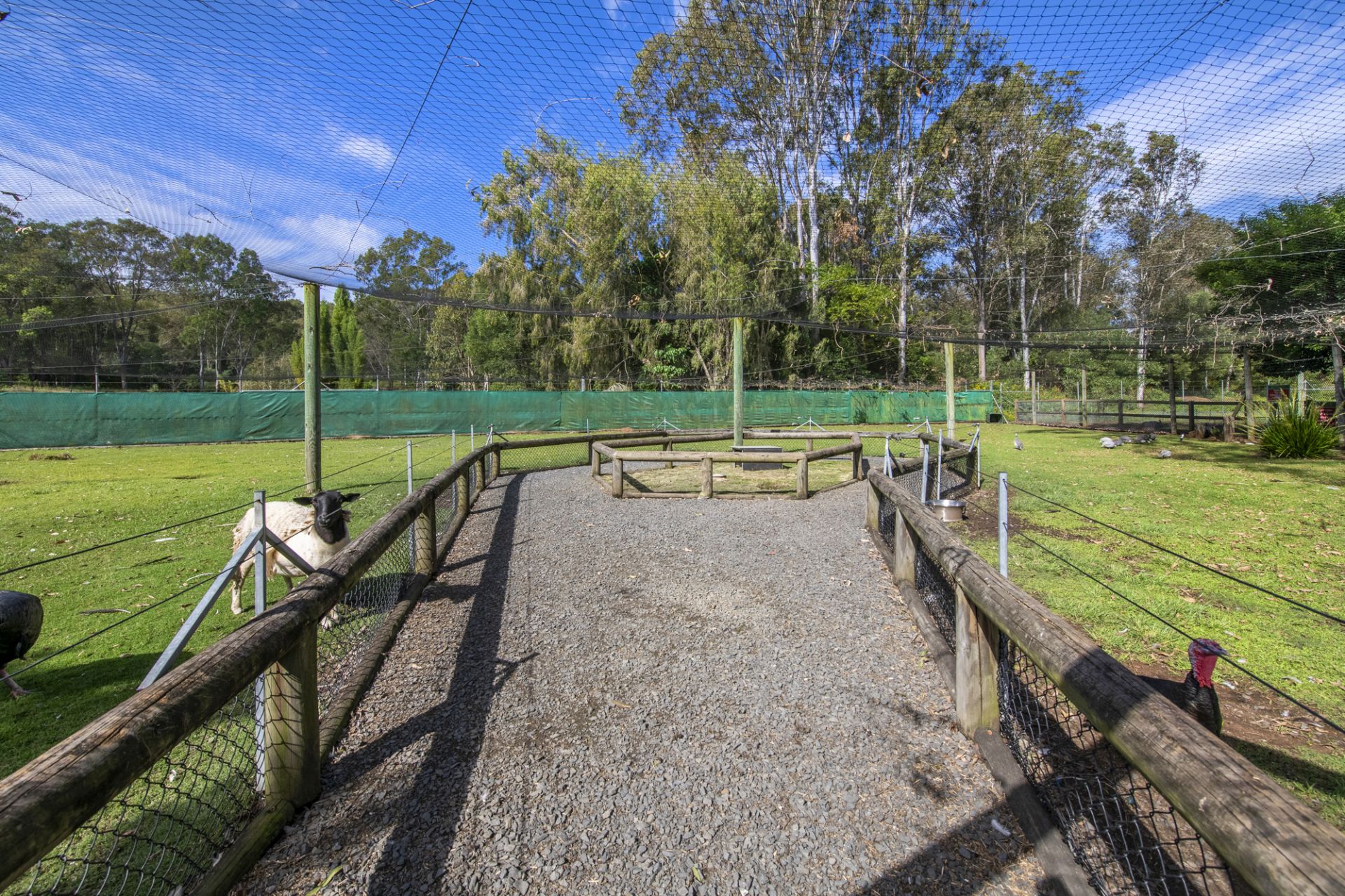 Surrounded by landscaped gardens, animal enclosures, and recreational spaces