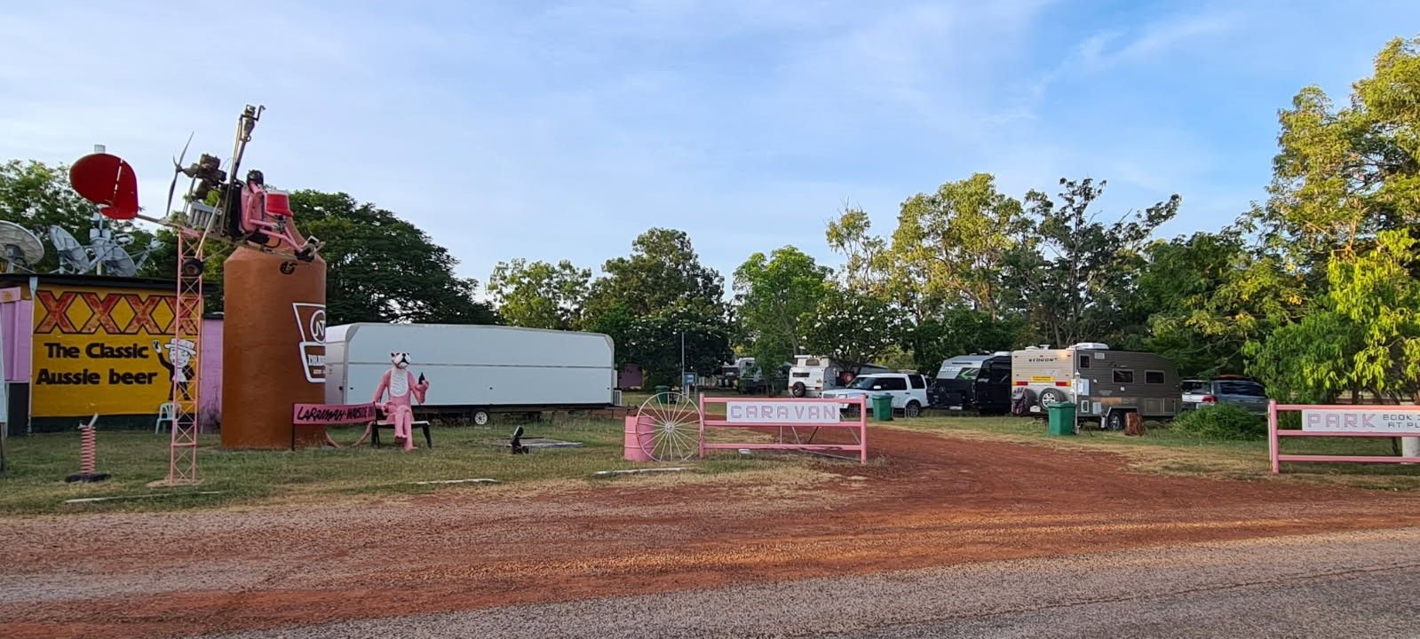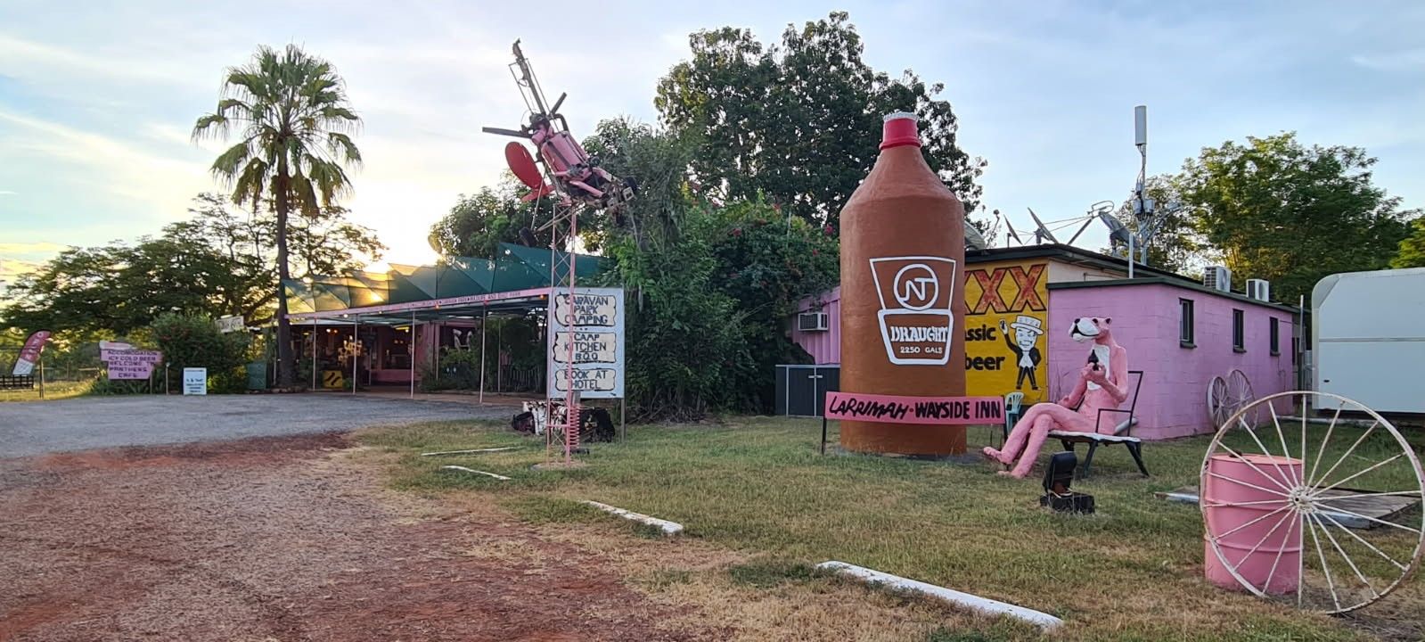 You have to see it to believe it - The Larrimah hotel - it is everything you expect and want it in a true blue Aussie Bush Pubs! From the Pink Panther(s), to the giant Draught Stubbie, to resident Emu's & Crocodiles, this pub is steeped in History & Mystique.