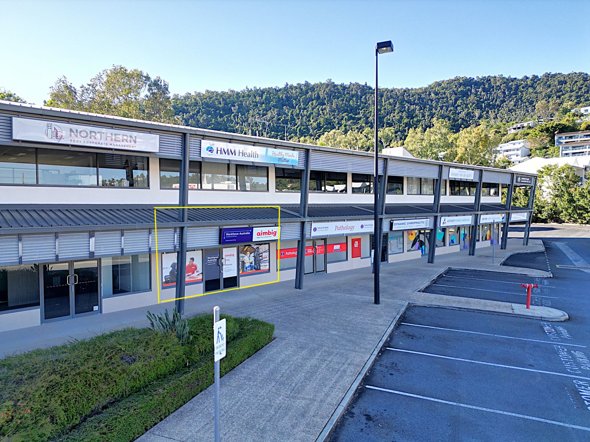 Situated on the high-traffic Shute Harbour Road, Suite 16 benefits from exceptional exposure between Cannonvale and Airlie Beach. The centre is co-located with national retailers and service providers including Coles, BWS, and Hungry Jack's, and offers easy access for clients and staff alike.