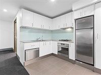 - Modern bathroom with shower and a fully equipped kitchen.