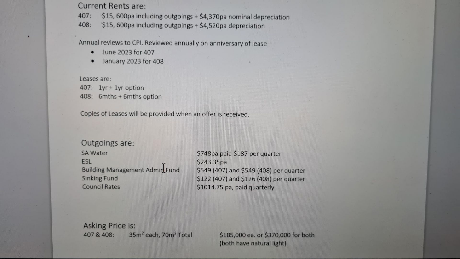 Tenanted at $1300 per month each.