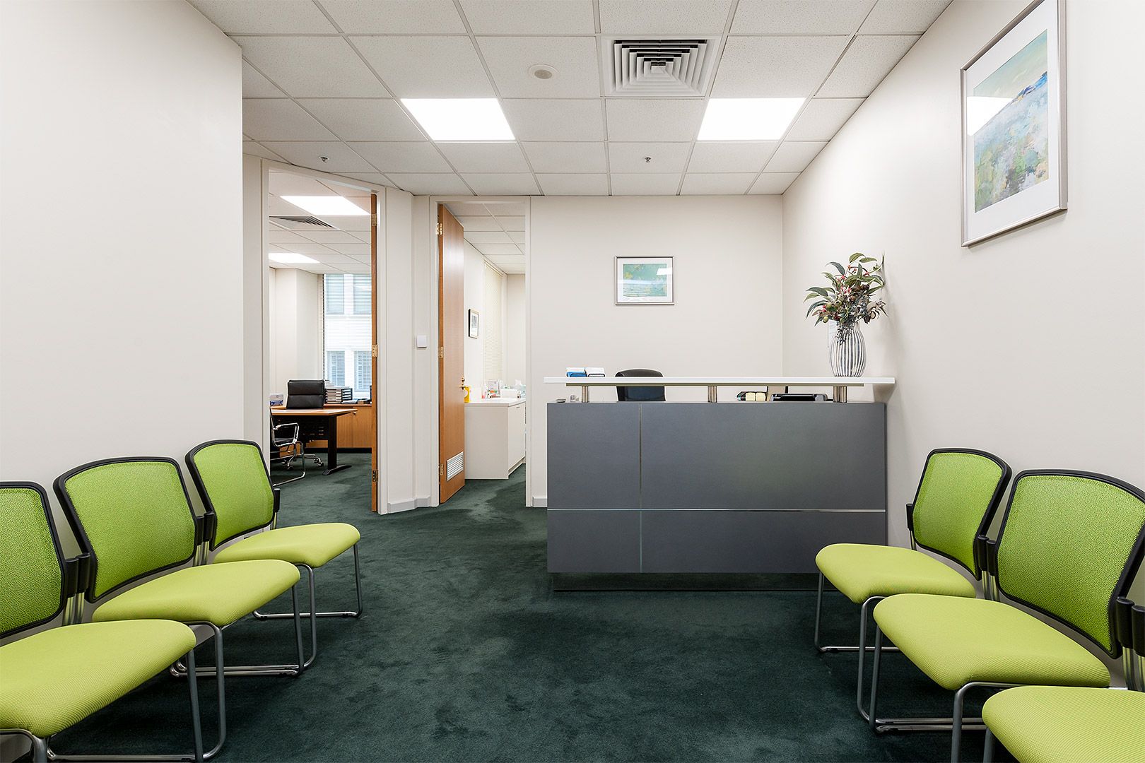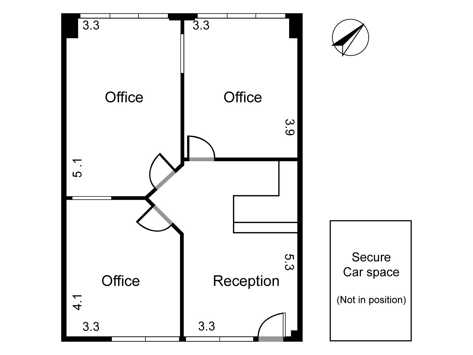 • Partitioned into 3 Offices and Reception area