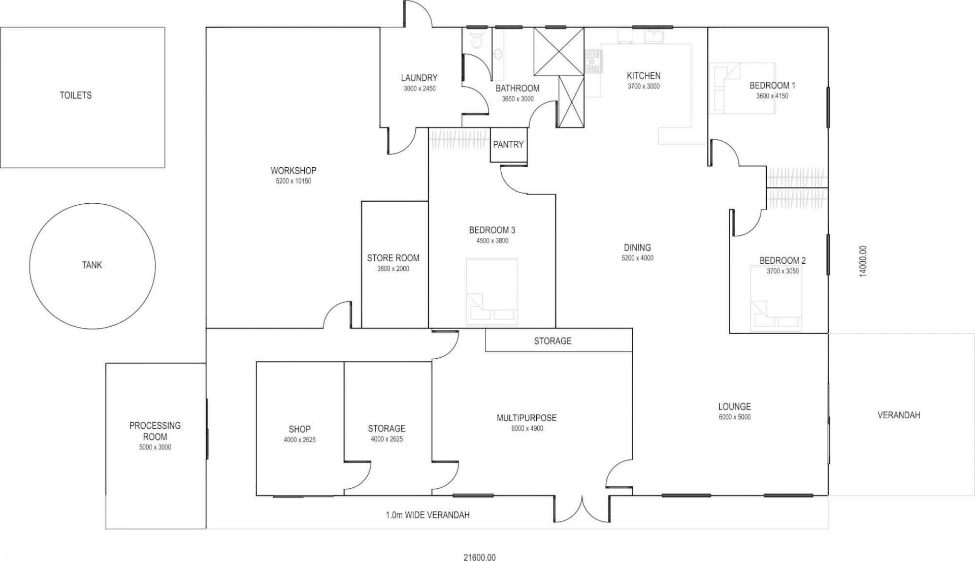 * 22m x 9m machinery shed with 3 phase power.