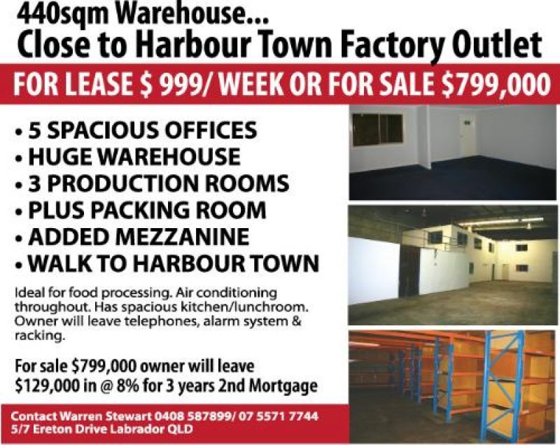 Ideal for Food Processing. Air conditioning throughout. has spacious kitchen/lunchroom. Owner will leave telephones, alarm system & racking.